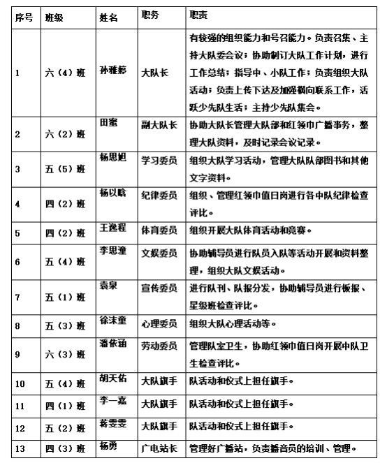 太仓市浮桥镇牌楼小学2025~2026学年大队委员名单2025.9