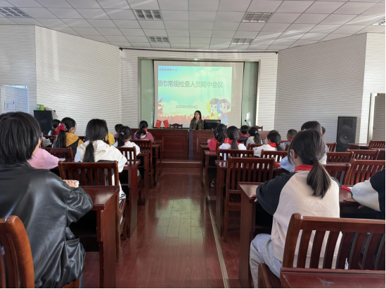 2025年10月29日下午,太仓市浮桥镇牌楼小学大队部召开了红领巾常规检查人员期中会议,此次会议由大队辅导员岳老师召集及主持。