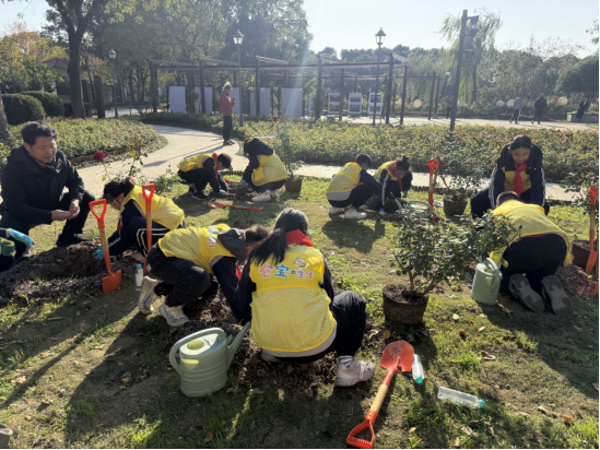 活动现场,在园区工作人员的专业指导下,同学们认真学习月季花的生长习性、种植技巧和养护要点。从翻土、挖坑、扶苗到填土、浇水,每一个步骤都有条不紊,大家分工协作、互帮互助,亲身感受劳动的乐趣与责任。