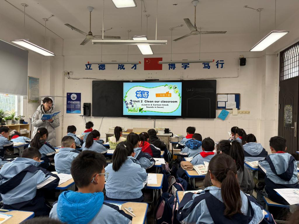 2025年2月25日,曹晓婕老师在三(2)班执教了3B Unit2 Clean our classroom (Lead-in&cartoon time)。本课围绕“Clean the classroom”主题展开,以“情境教学”和“任务型活动”为主线,融合词汇、对话、语音及文化意识培养。教学过程设计层层递进,以猜谜游戏激活旧知,新授单词,对比clean和dirty自然导入主题。接着通过观察、圈划引导学生分析Bobby小组分工,渗透合作意识,角色扮演强化语言输出。最后以歌谣总结/k//g/发音,摘苹果游戏巩固语音规则。作业设置分层任务,兼顾基础巩固与拓展实践。