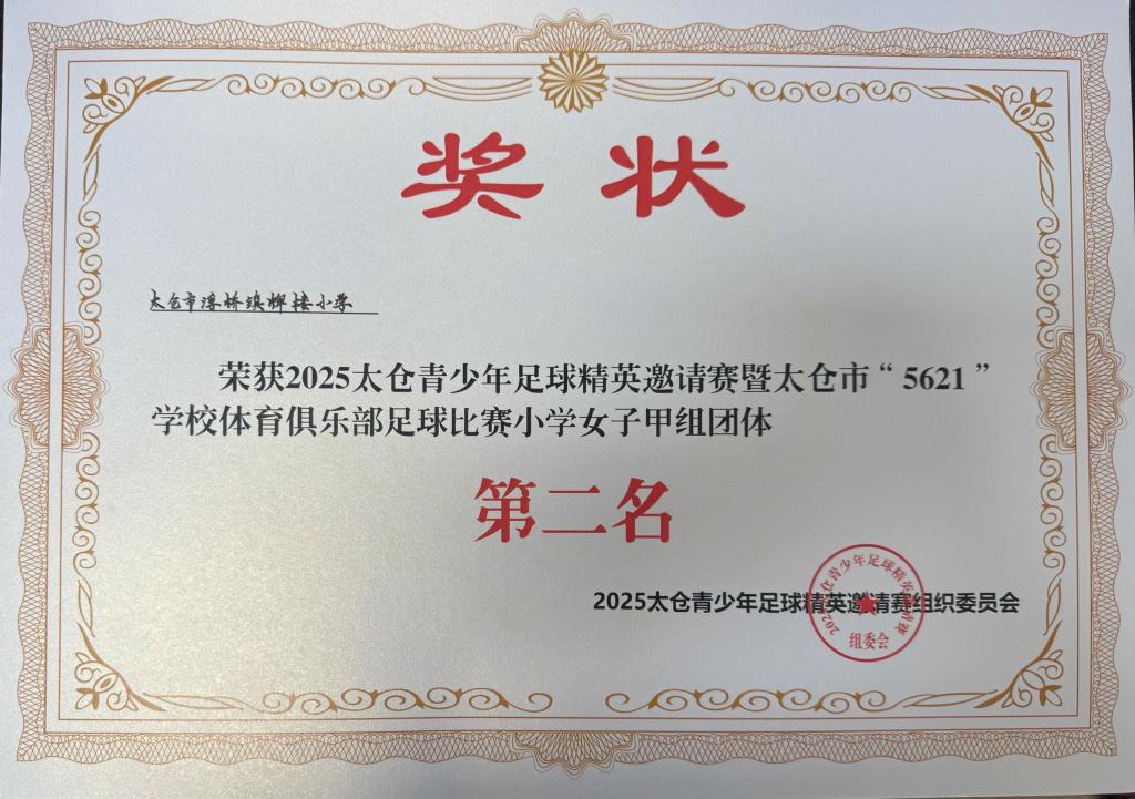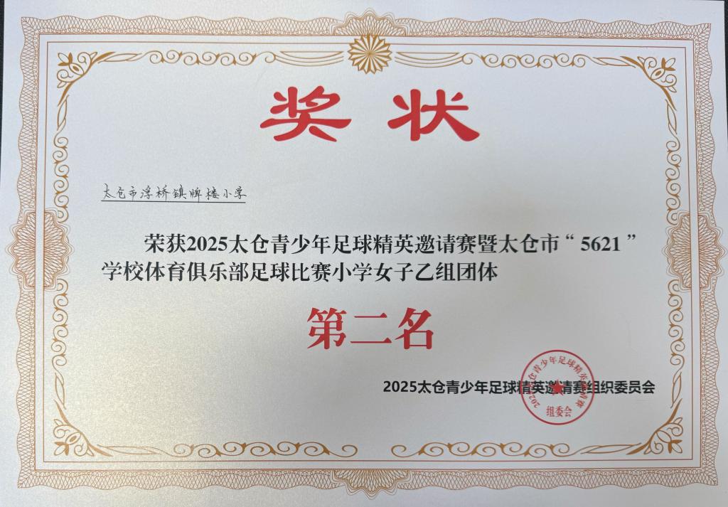 2025年9月,2025太仓市青少年足球精英邀请赛拉开帷幕。太仓市浮桥镇牌楼小学的女足队员们凭借精彩的表现,荣获太仓市小学女子甲组、女子乙组第2名的好成绩!