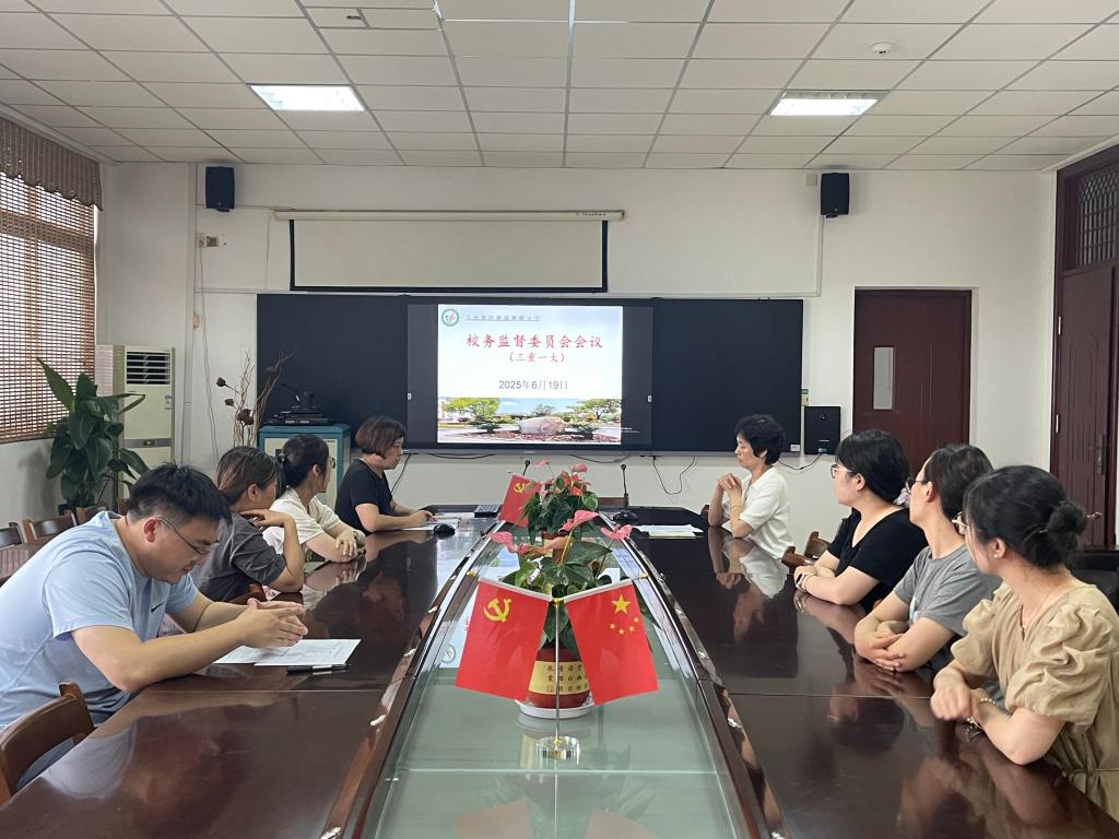 6月19日下午,牌楼小学在会议室召开了校务监督例会。会上,教务处关于暑假和秋季教辅材料的征订统计工作进行了介绍,根据江苏省教育厅《关于加强全省中小学教辅材料使用管理工作的实施意见》精神,由家长自愿购买。总务处关于秋季学期午餐供应进行了说明,牌楼小学因食堂拆建工程尚未完工,2025年秋季学期开学后仍无法由校内食堂供餐,将由原已招标供餐单位继续提供午餐,并向教育局相关部门报备,共同对供餐工作进行监督。本次四届八次教代会有三项提案,分别涉及科学教师超课时津贴,优秀年段辅导员评选和骨干教师考核,校监委进行了审议,确定了列案项目。